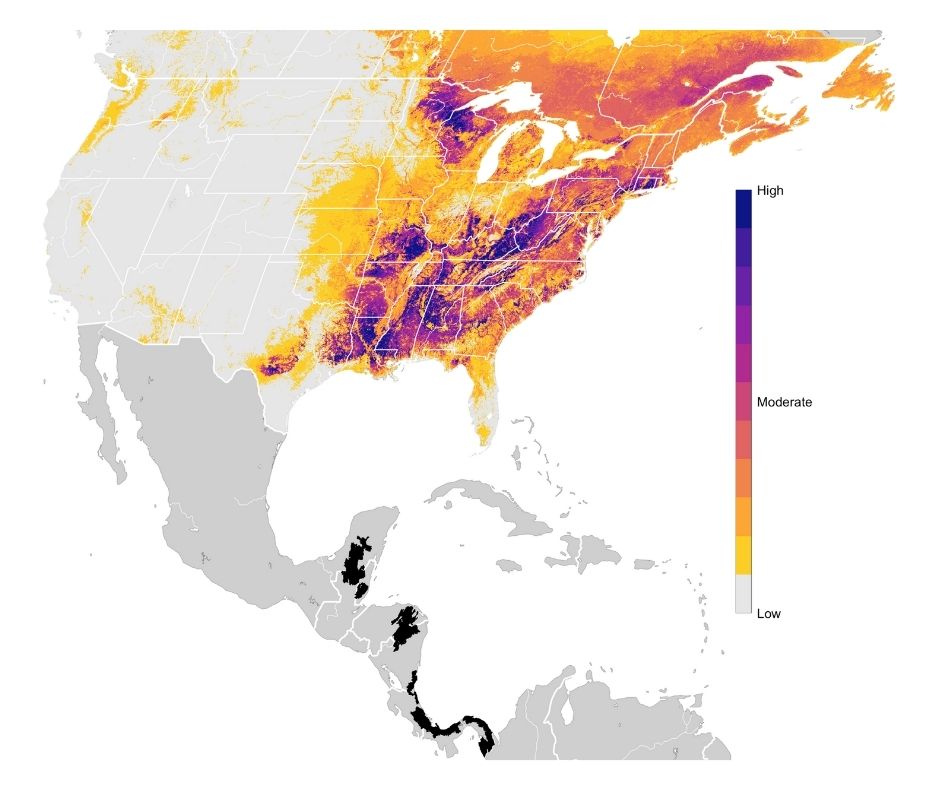 The Cornell Lab’s science has enabled us to map “sister landscapes” to the Five Great Forests in North America - the places where the migratory species that need Central America’s forests concentrate during spring and summer. These eastern forests, from Appalachia to the Great Lakes to New England, would fall silent if Central America’s great forests were lost.